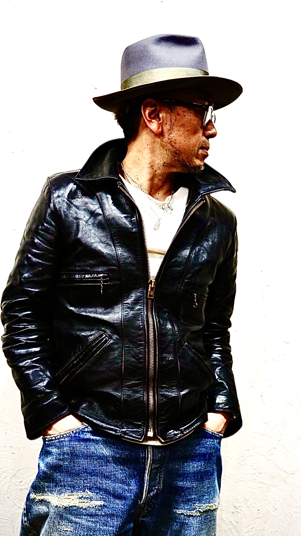 90年代に一世を風靡したシングル襟付きライダースジャケットをモチーフに製作されました。