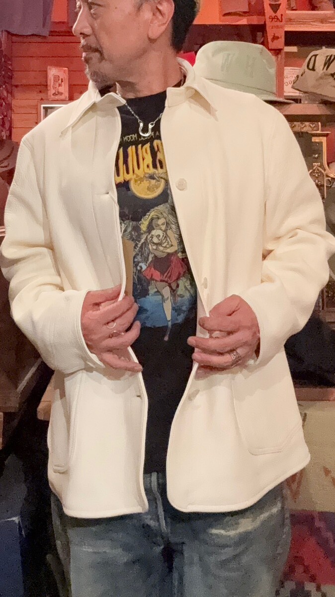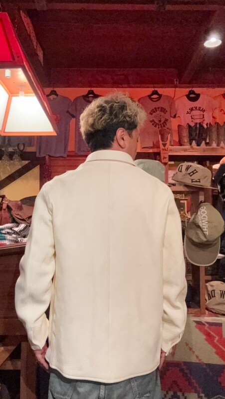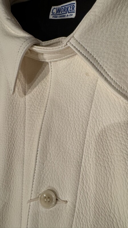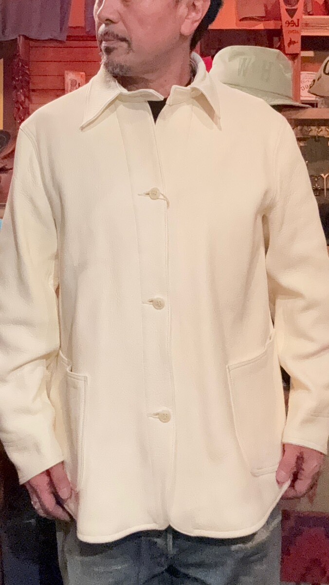 贅沢に鹿革を使用していますので、鹿革本来のシボ感も最高の一着です。