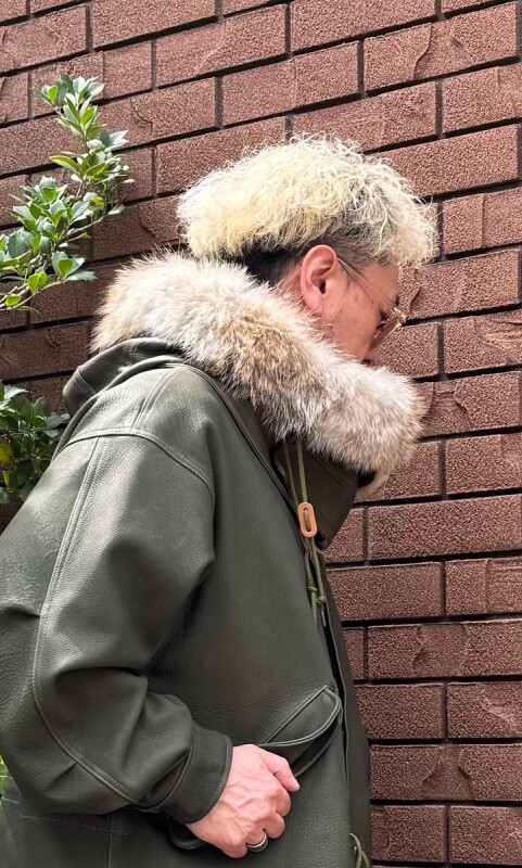 ※レザーには革本来特有のキズやシワ、着色による色むら等がある場合がございます。それもアジと捉えて着用していただけると幸いです。よろしくお願いいたします。