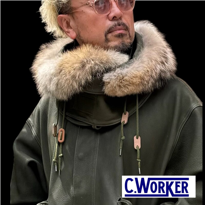 FINE CREEK C-WORKS Lur Deer ルル 鹿革 OLIVE フード [CWHA001]