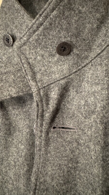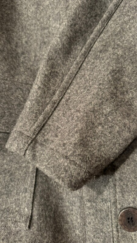 ウールメルトンを贅沢に1枚仕立てで製作しており、ボタンには13スターズのロコゾナッツを削り出しでオリジナルで作り使用した拘り抜いたコートとなっています。
