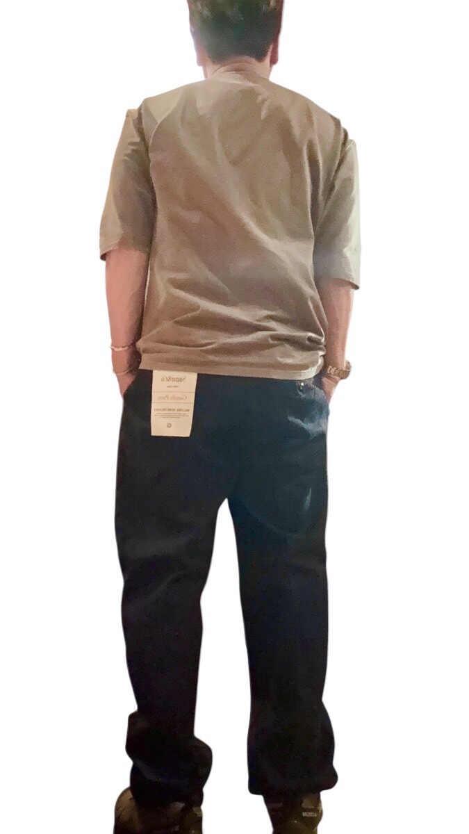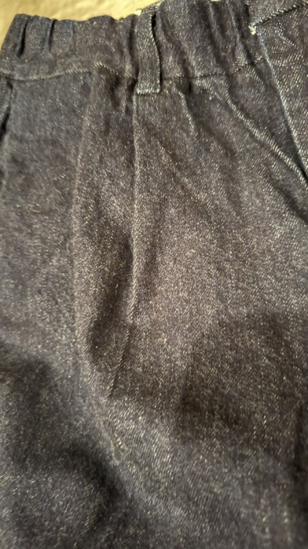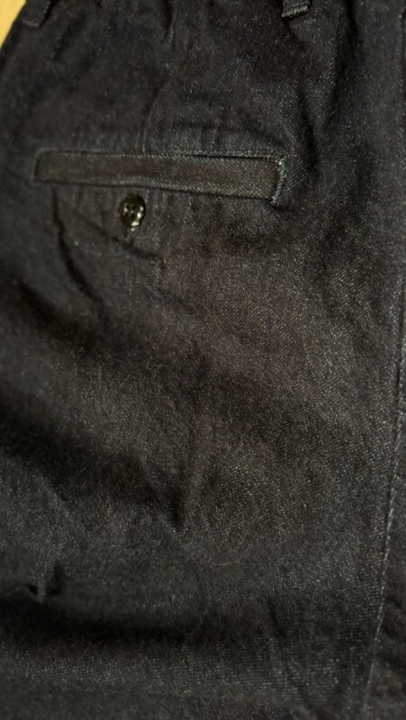 対してgentle pantsはスラックスでありながら、ヴィンテージデニムを彷彿させる表情を追及して狭幅デニム(セルビッチデニム)を使用して作成しました。