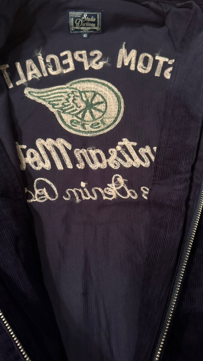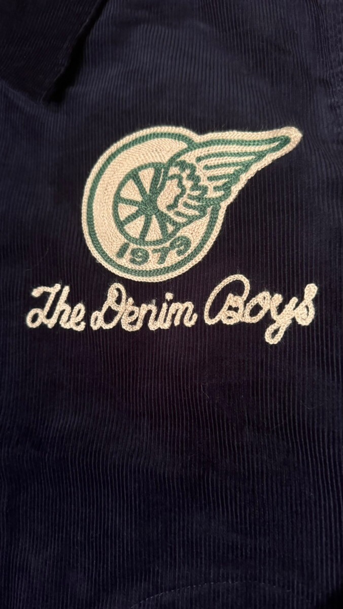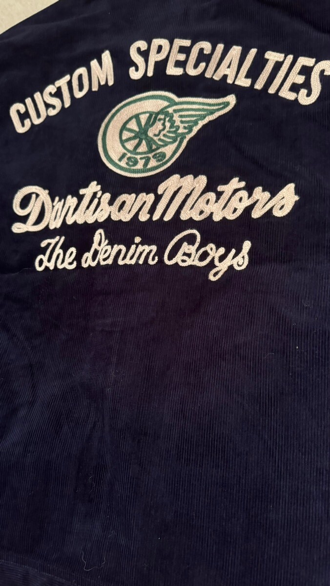 架空のカスタムモーターショップをイメージしてデザインされたコーデュロイ生地ジャケット。