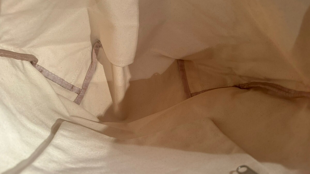 頑丈なキャンバス地で製作されていて、外側には大きめのジップポケットも付き内側にもポケットが付きます。