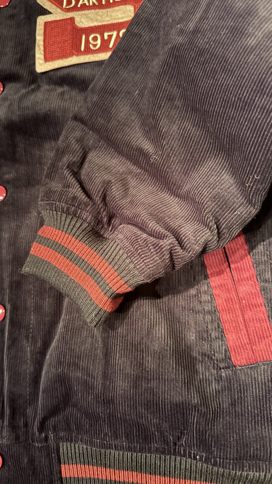 裏地付きのコーデュロイ生地スタジアムジャケット。