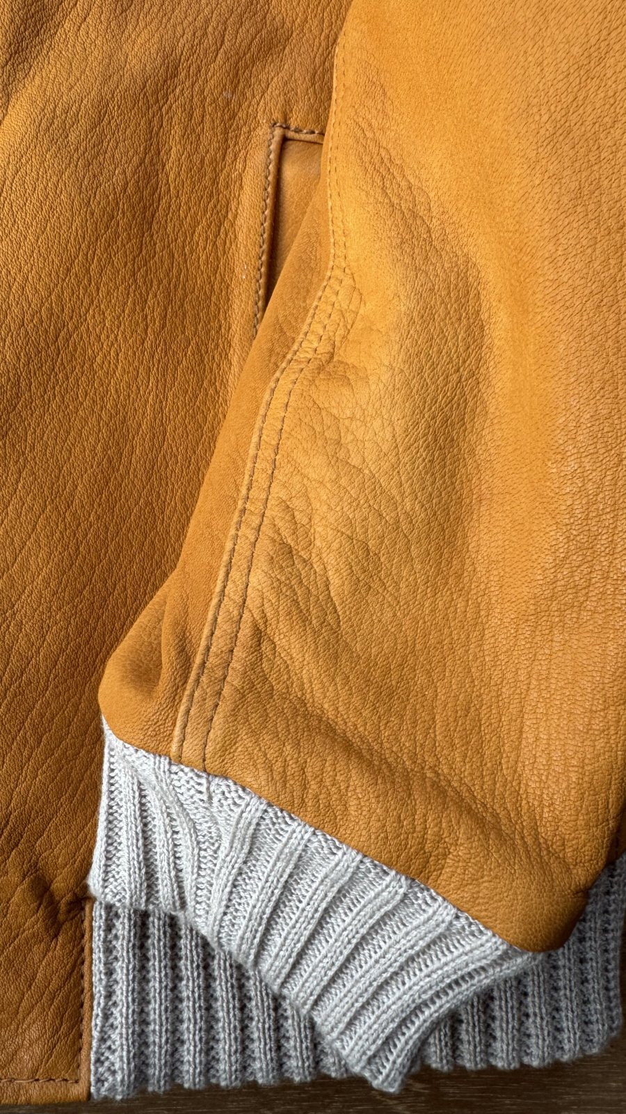 レザー本来のキズ等がある場合がございますが、それもアジと捉えて着用していただけると幸いです。