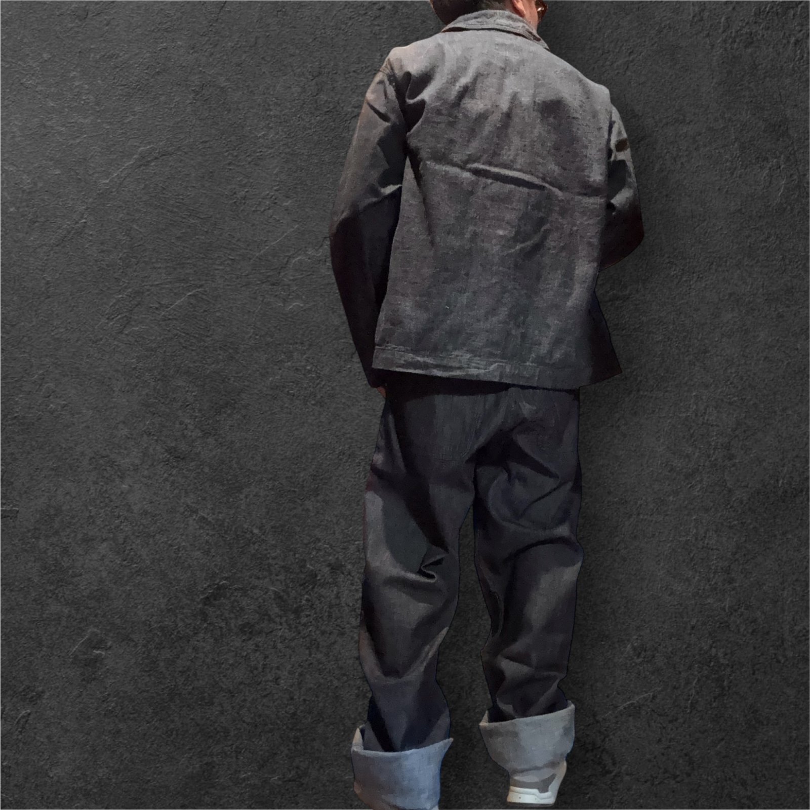 ショート丈でルーズめな身幅、袖は可動域を優先しテーパードがほとんどないパターンで製作されました。