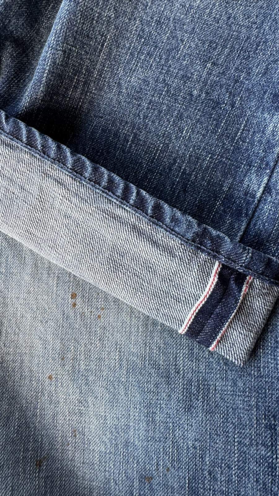 これまでのSugar&Co.ではナチュラルでクリーンな色落ちが主流でしたが、今回は一転。 同時に登場した“大戦型デニムジャケット(ジェントルジャケット)”の時代背景に呼応するように、荒々しくワイルドでありながら、ただ純粋に“かっこいい”と感じられる色落ちを追求しました。