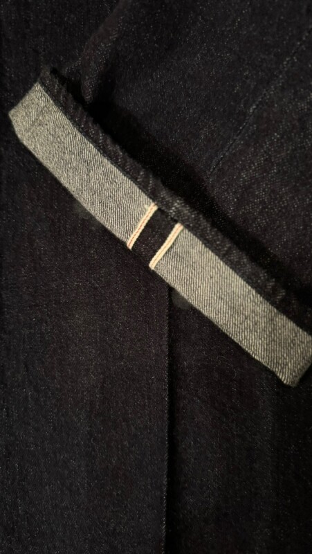 ンを、特注で強めのムラ形状の糸にして濃色のピュアインディゴ(合成)/ブラックは酸化染料(サルファ)でそれぞれロープ染色しています。
