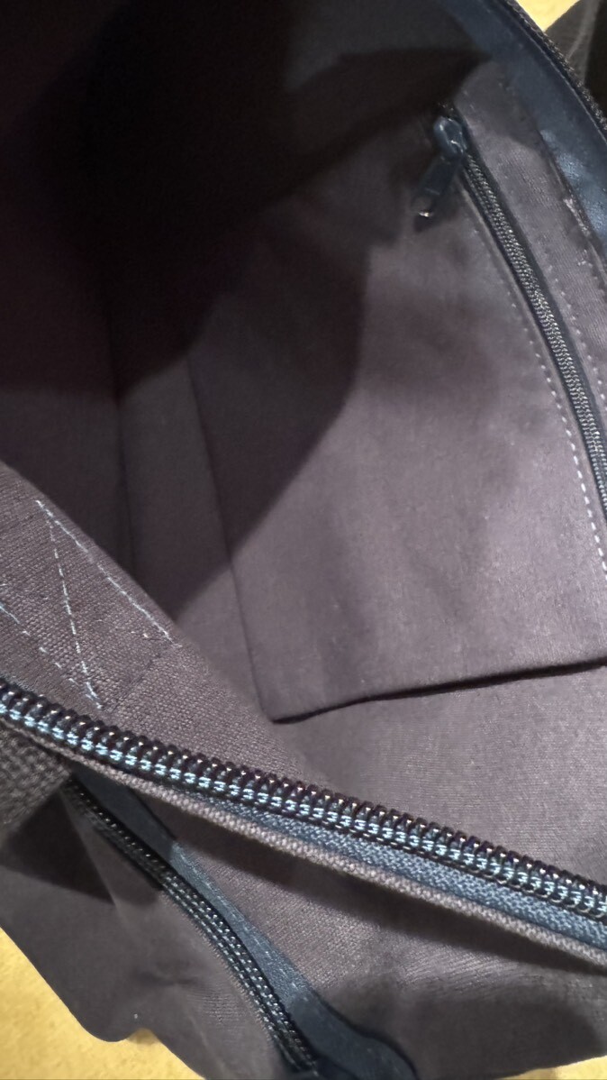 頑丈なキャンバス地で製作されていて、外側には大きめのジップポケットも付き内側にもポケットが付きます。