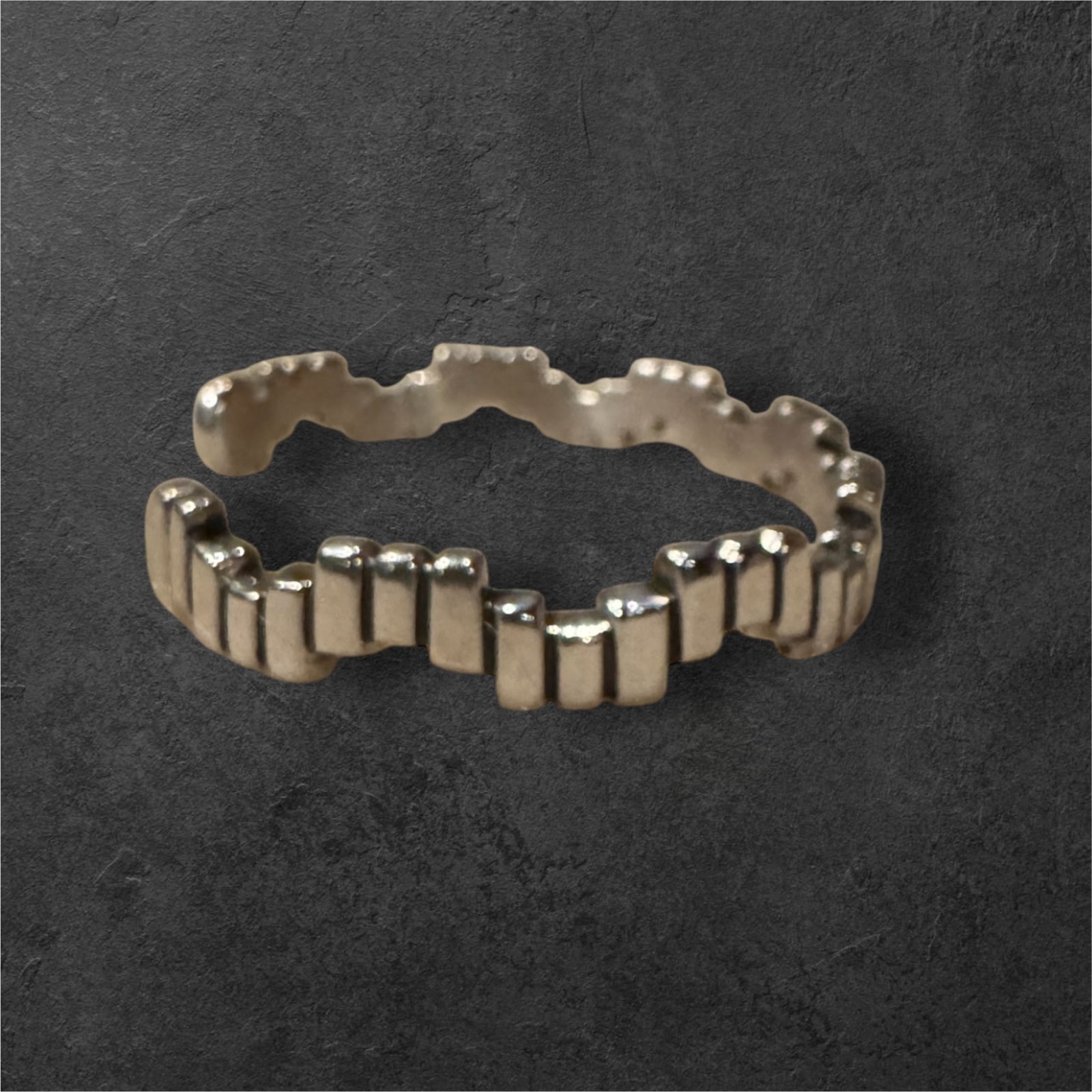 このスタイルのブレスはわかる人にはわかる、イコライザー(音の特定の周波数帯域ごとの音量を増減させる装置)からインスパイアされ製作されたブレス、バングルです。