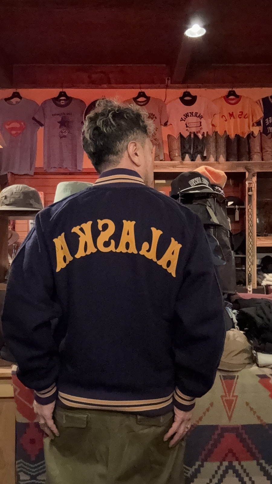 1932年のALASKAで行われた冬季オリンピック開催場所レイク・ブラシッドの応援スーベニアスタジアムジャケットを妄想し作成。