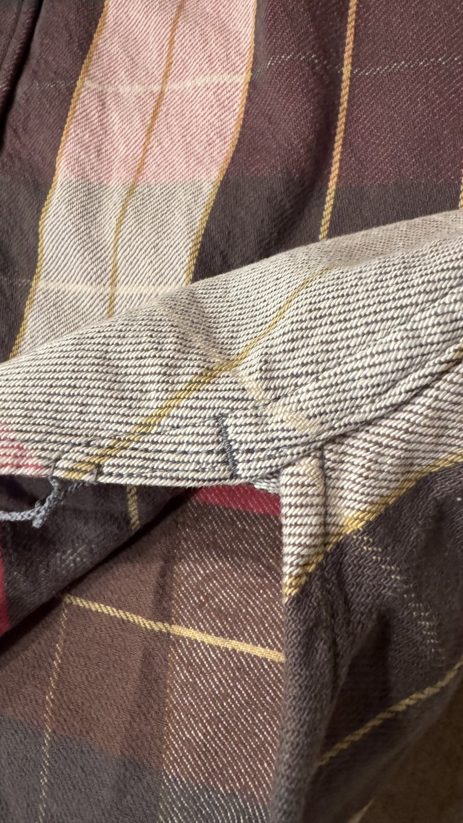 もう1種類のレギュラー丈のネルシャツとの違いは、ジャストサイズで着用して頂くとハッキリとわかるのですが、レギュラー丈の物に比べると肩幅が広く、身幅は狭く、少し腕の長さも長い形となります。