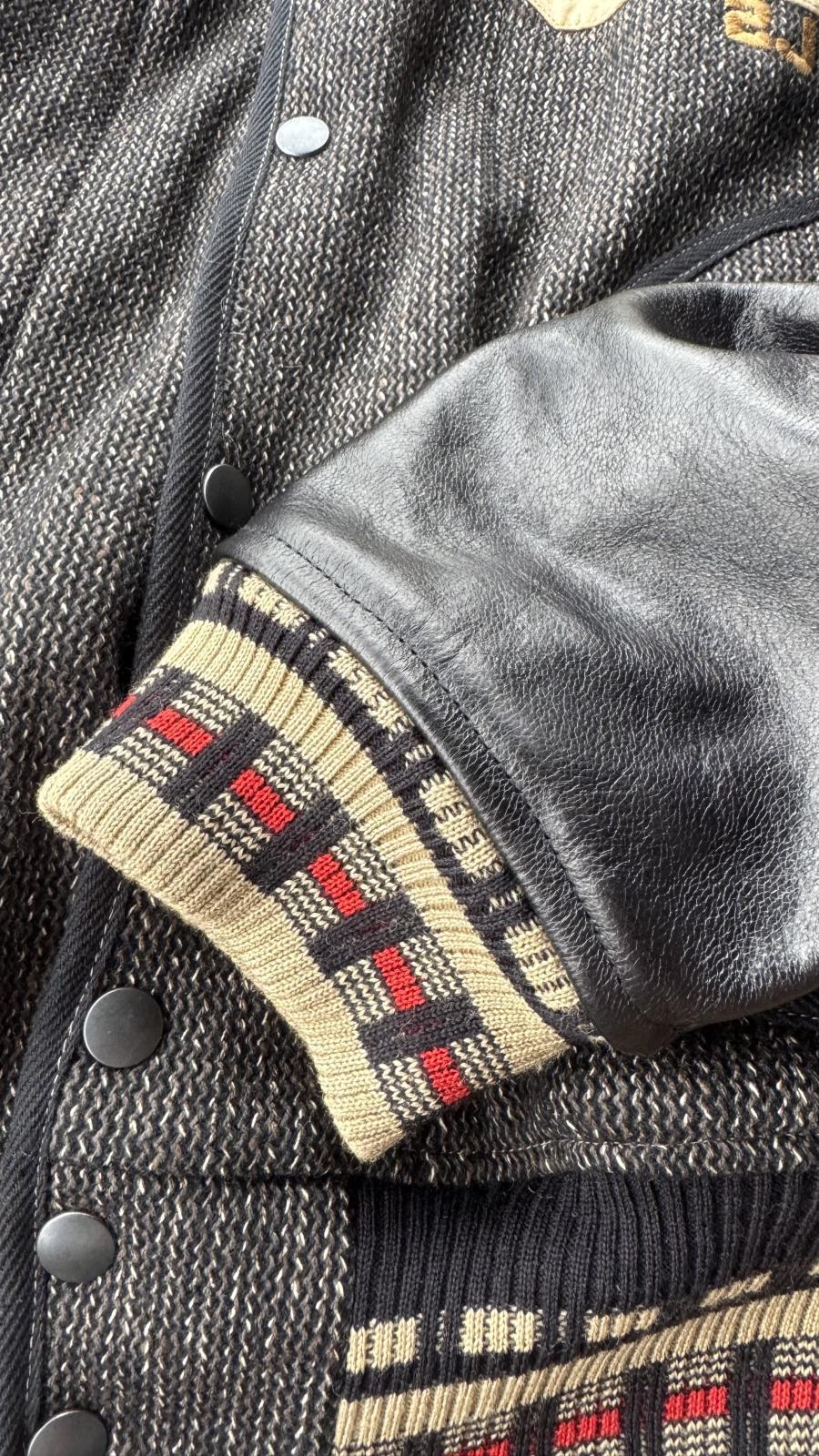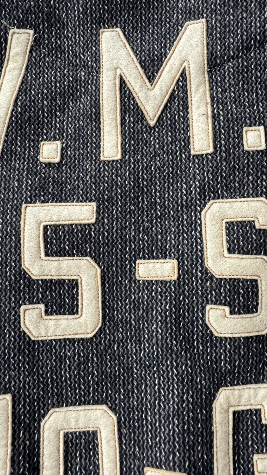 デザインは敢えて当時には無い、VERSITY JKに落とし込み、袖部分に染料染めした馬革でツートーン仕様にし、前後にウールのアップリケを刺繍した、ありそうで無い唯一無二のヴィンテージ風なジャケットに仕上がりました。
