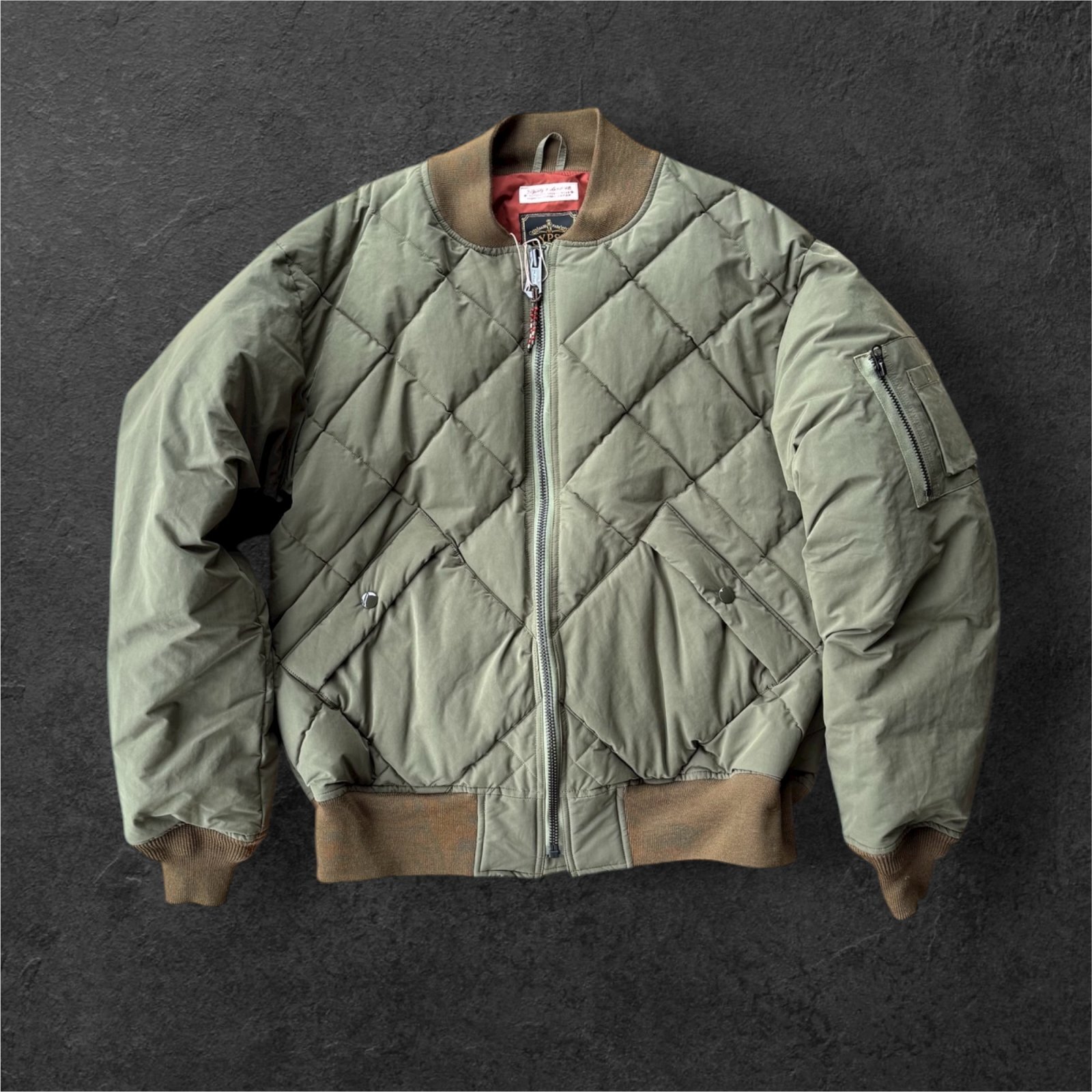 MA-1で真冬のツーリングにも耐えられるよう、中綿をフランス産のホワイトダウンに替え極寒仕様にしました。