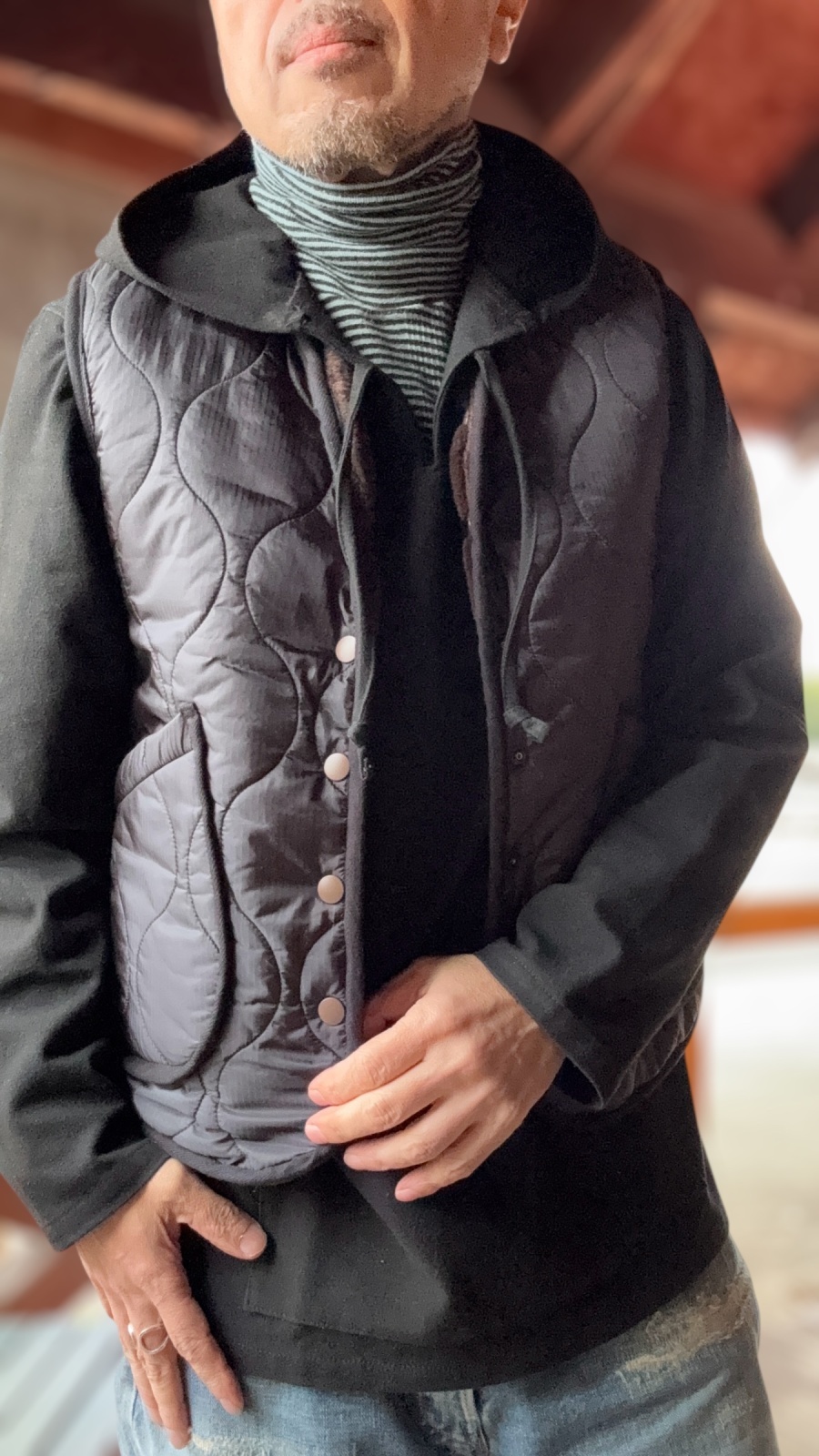 普通にベストとして使用はもちろん、ボアの方ではレザージャケットに合わせたら最高にカッコよく合わせられそうです。