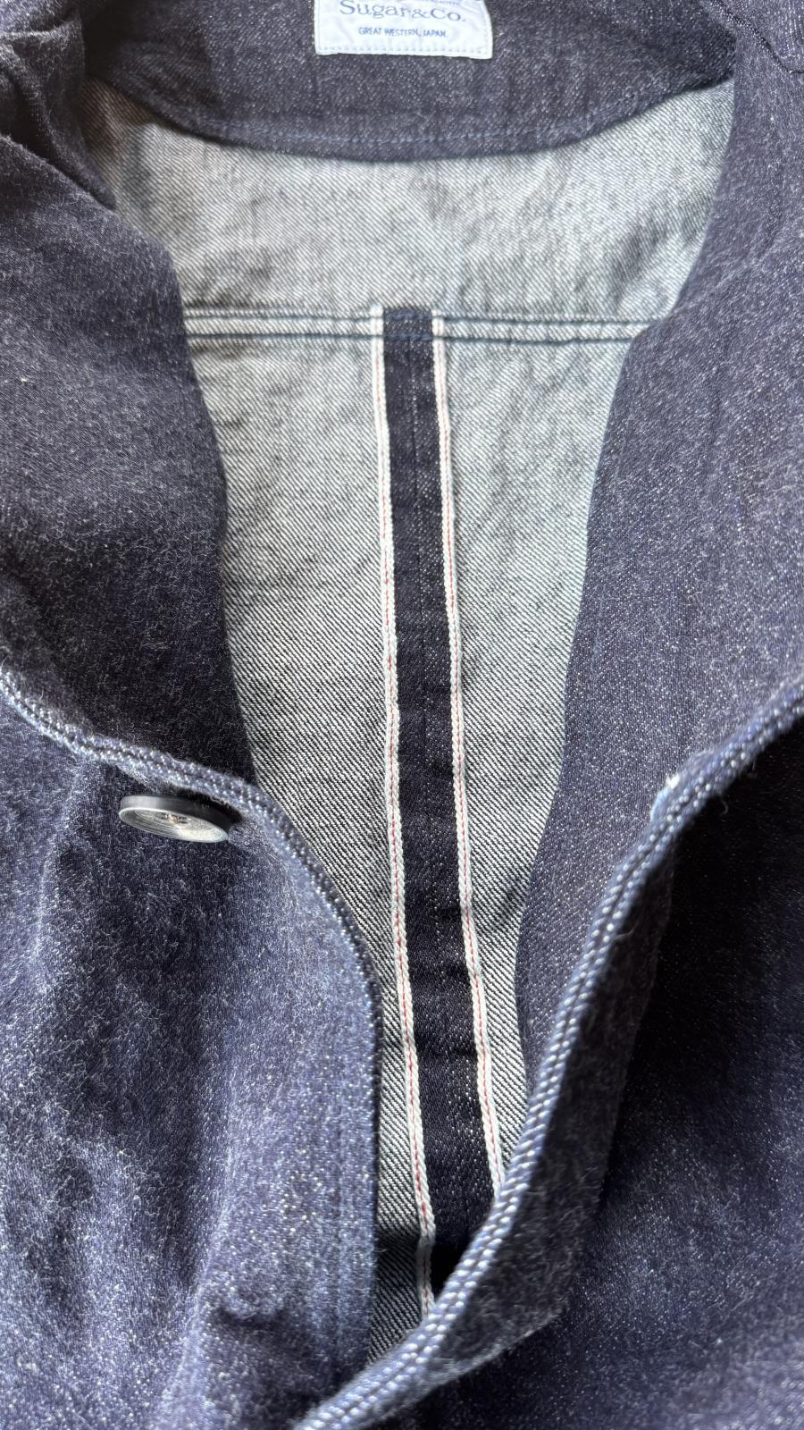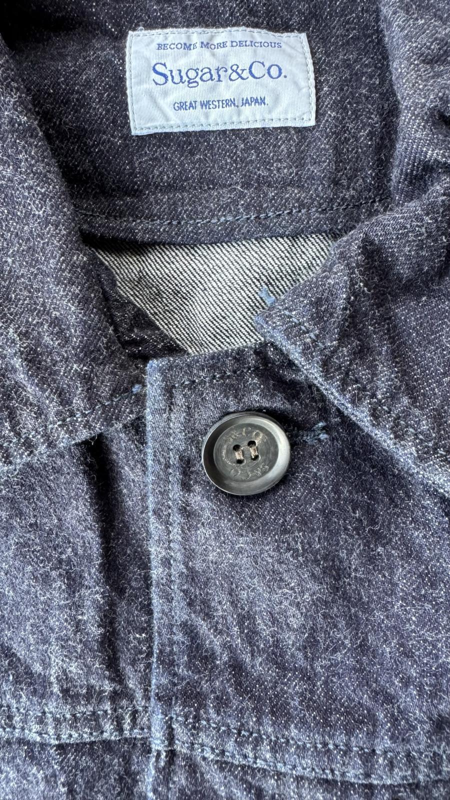 同じくオリジナルセルビッチデニムを使用したスラックス型デニム(ジェントルパンツ)とセットアップでの着用が可能なコチラは、パンツ同様にSugar&Co.らしさ全開の1着です。
