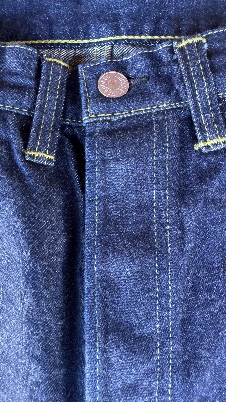 織機はTOYODA G3を使用し、経68本×緯47本で打ち込む事で精密に仕上がっています。デザインはS501XX初期型をベースに刻印入りの付属も再現しています。バックポケットのステッチも排除しシンプルなスタイルになっていて極限まで忠実に再現されました。