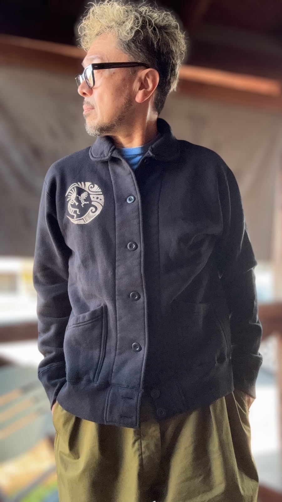 フロントにはネイティブなココペリの刺繍が左胸に入っています。
