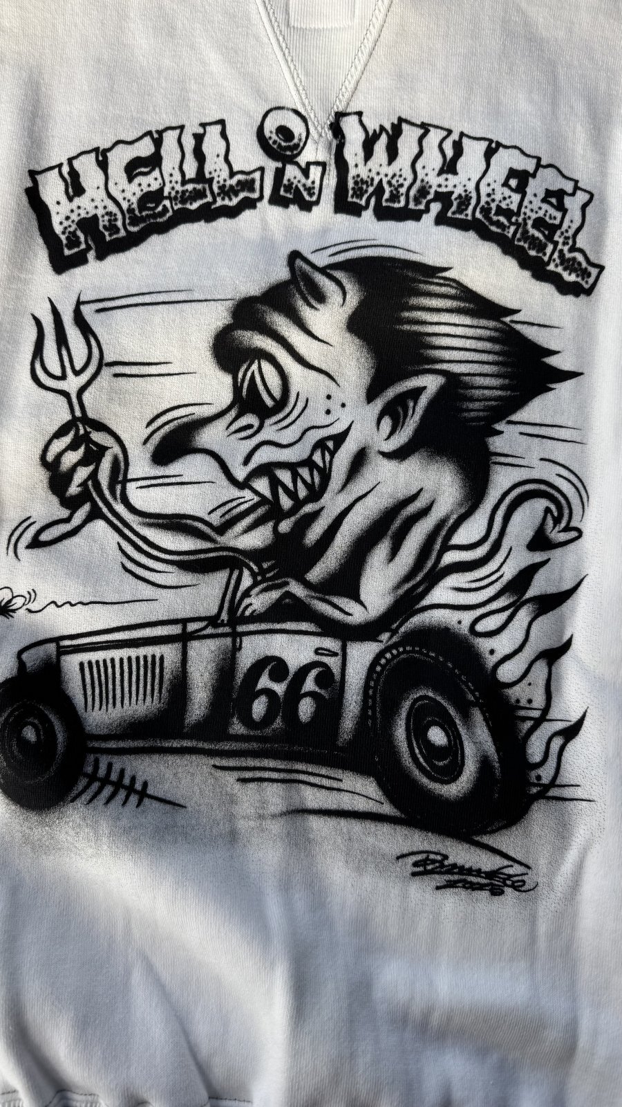 CUSHMAN(クッシュマン)PRINT SET IN SLEEVE (HELLonWHEEL)スウェット WHITE