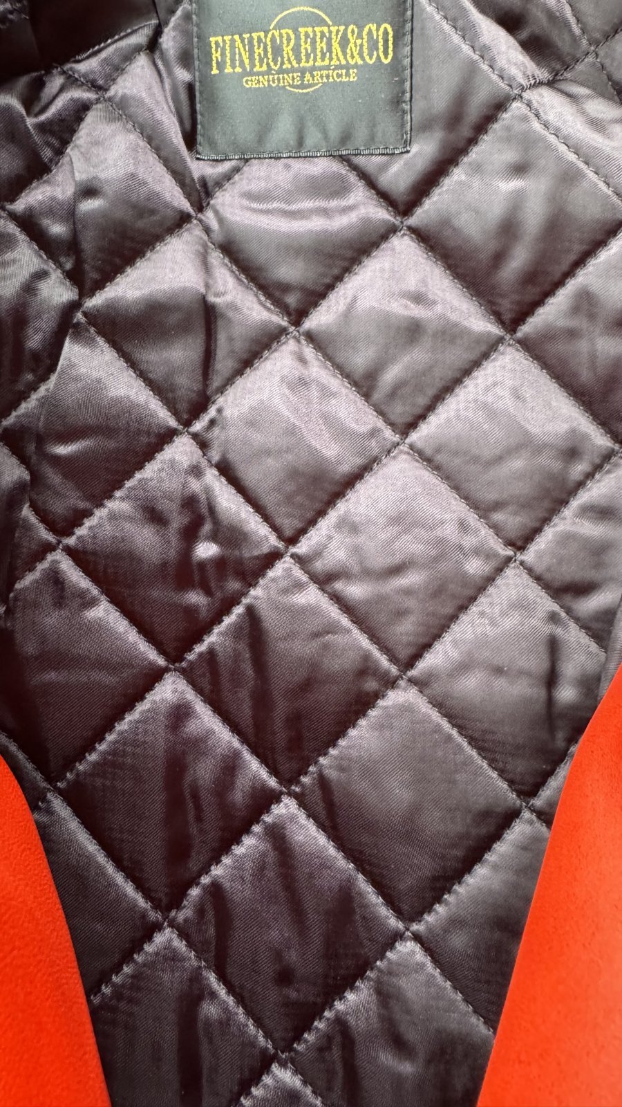裏地にはキュプラ100%レッドのキルティング、ZIPは"CLIX"のアルミファスナーを使用してます。