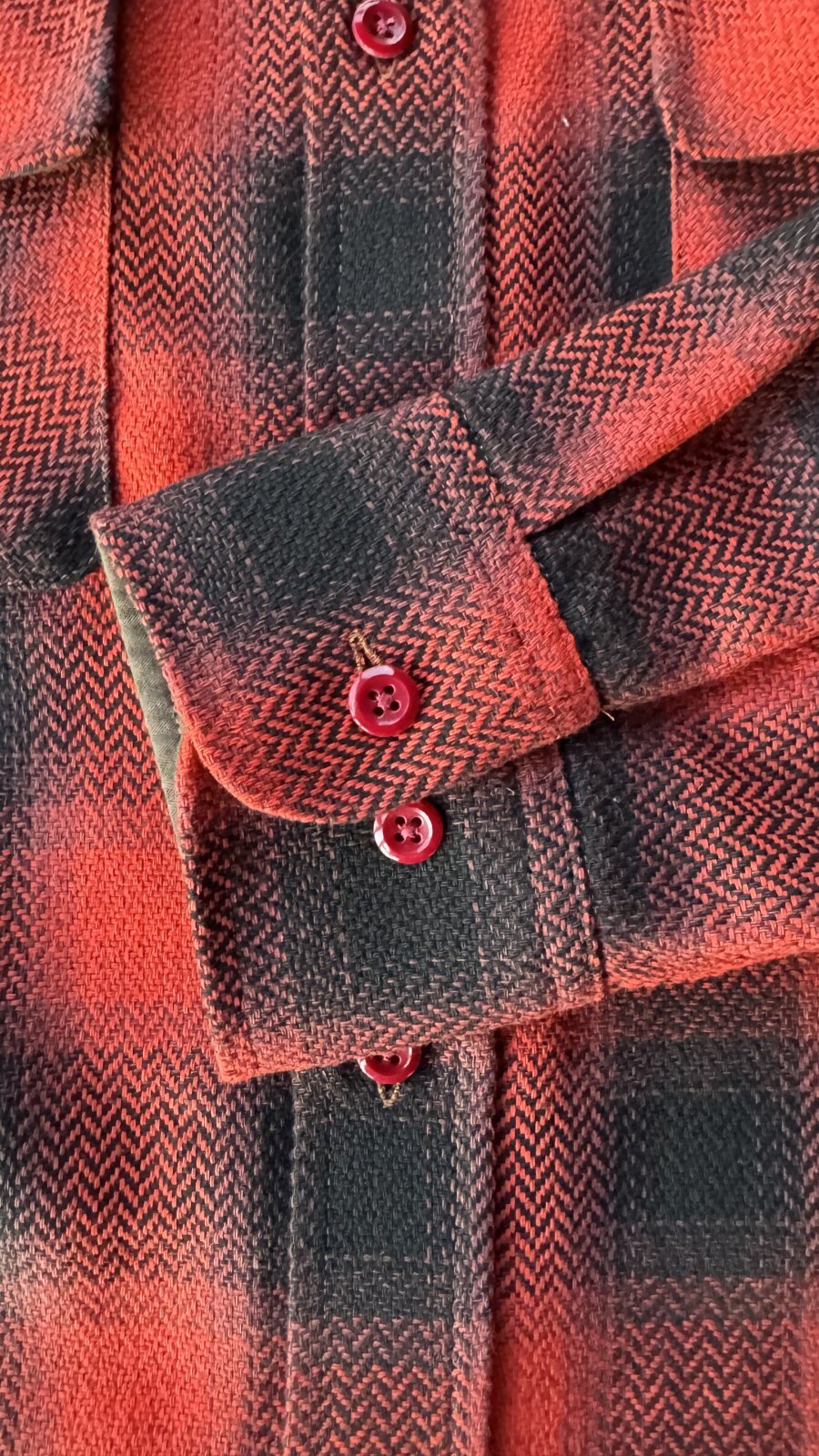 8番手という極太番手を単糸使いしヘリンボーン織でオンブレーチェック模様に織り上げたワークシャツです。