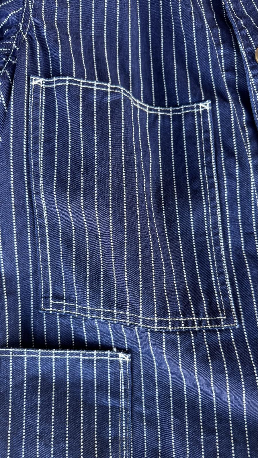 JELADO本社が保有する1920年代以前のSWEETORRの変形ポケットカバーオールをベースにLASTRESORT青タグから派生したINDIGO WABASHストライプ生地を使用したスペシャルなカバーオールが出来上がりました。