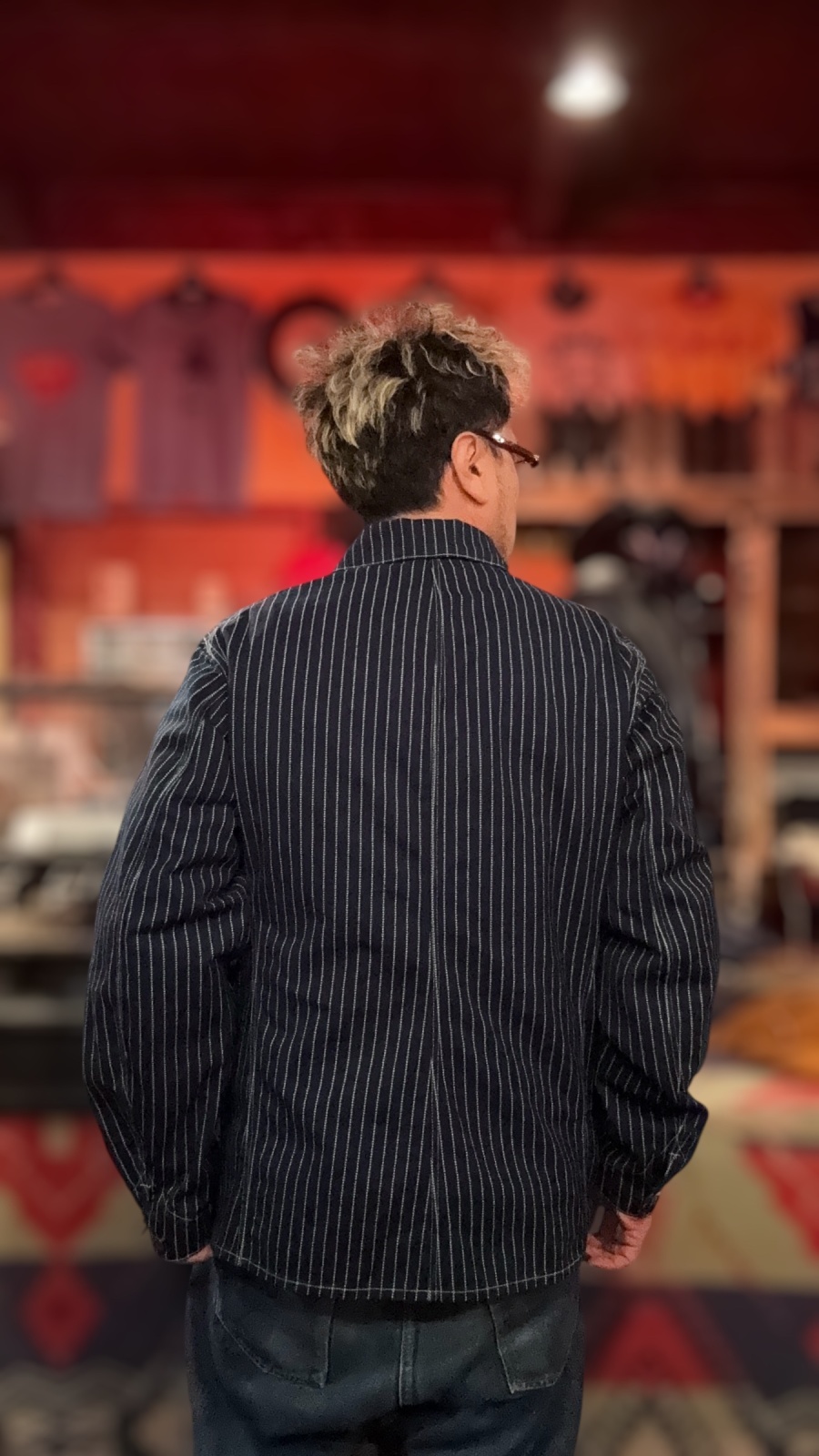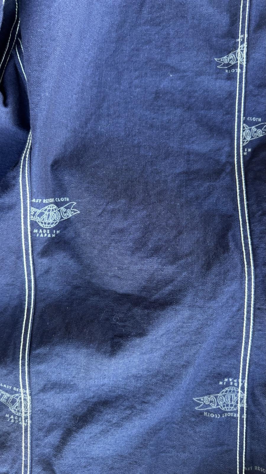 さらに、ヴィンテージからサンプリングしたWABASHストライプを抜染プリントで再現しヴィンテージ感あふれる生地です。ストライプのピッチやドットの大きさなどもヴィンテージのディテールを忠実に再現し、他には無いオリジナル感ある素材となっています。
