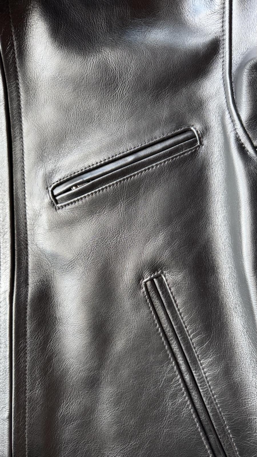 革は剥がれて落ちる茶芯仕様で、経年変化も楽しめるうえに着用しやすいジャケットです。