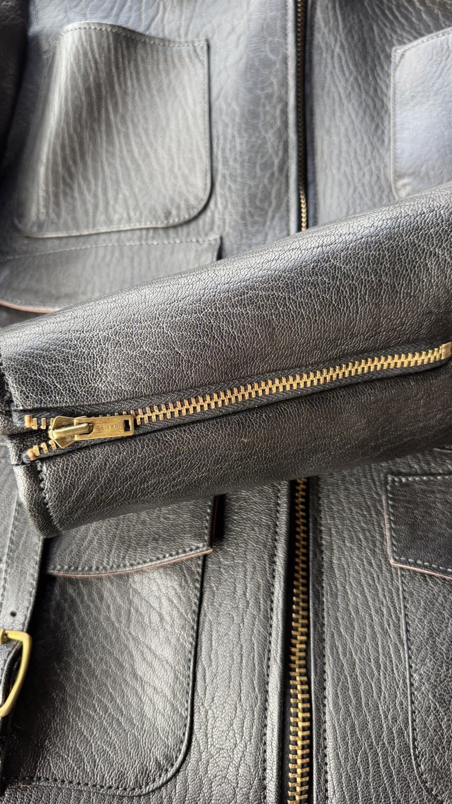 厳選されたGOAT(山羊革)を使用し、独特の風合い、シボ感を産み出した 山崎氏オリジナルレシピでフィニッシュしたゴートレザーです。
