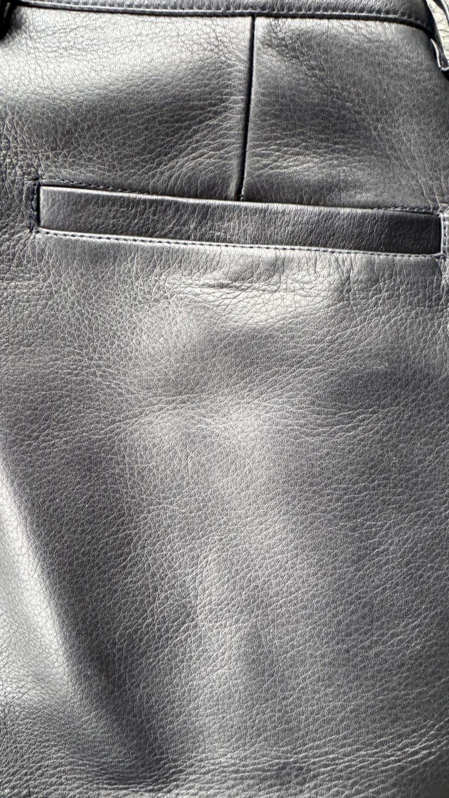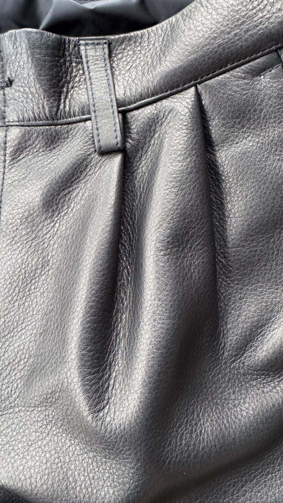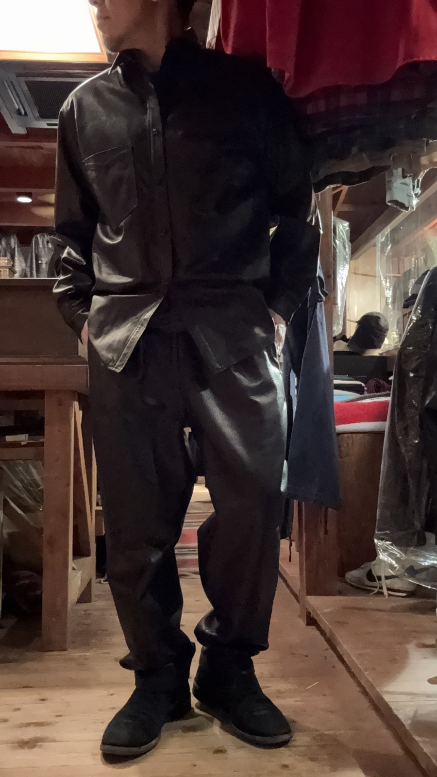 5ポケットのレザーパンツと違い、柔らかなイメージで作られていて大人の雰囲気さえ感じさせられるパンツですね。