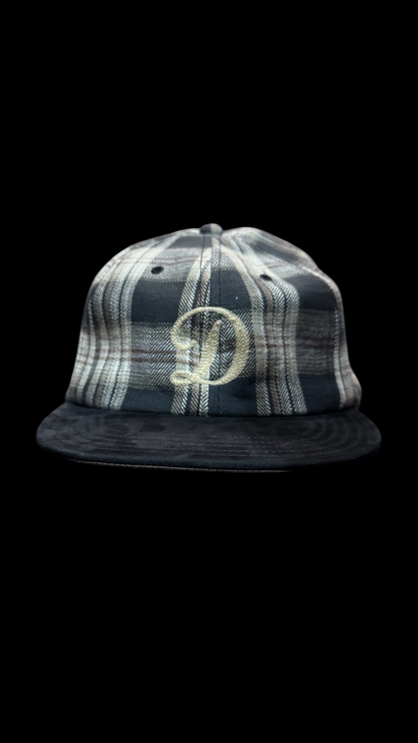 ヘリンボーンチェック柄のコットンネルクロスと牛革ヌバックを組み合わせた、6パネルベースボールキャップです。